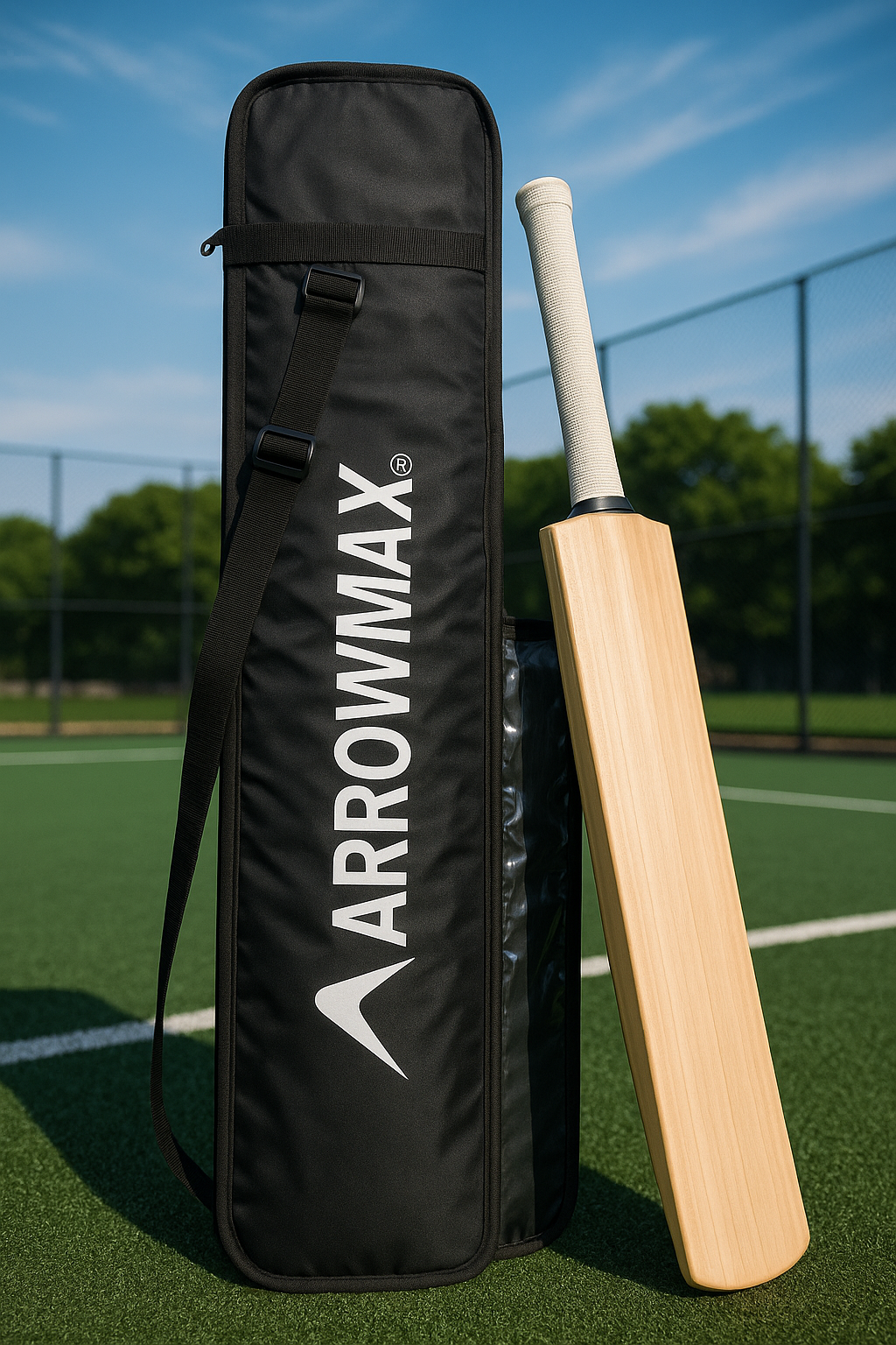 Protect your cricket bat with the ArrowMax Full-Size Bat Cover, designed for full-length protection, convenience, and durability. Made to fit English and Kashmir willow bats, this cover features a fully padded interior and a water-resistant nylon-polyester shell. Whether you’re heading to the nets or storing your bat between matches, it offers reliable protection with a sleek, minimalist design.