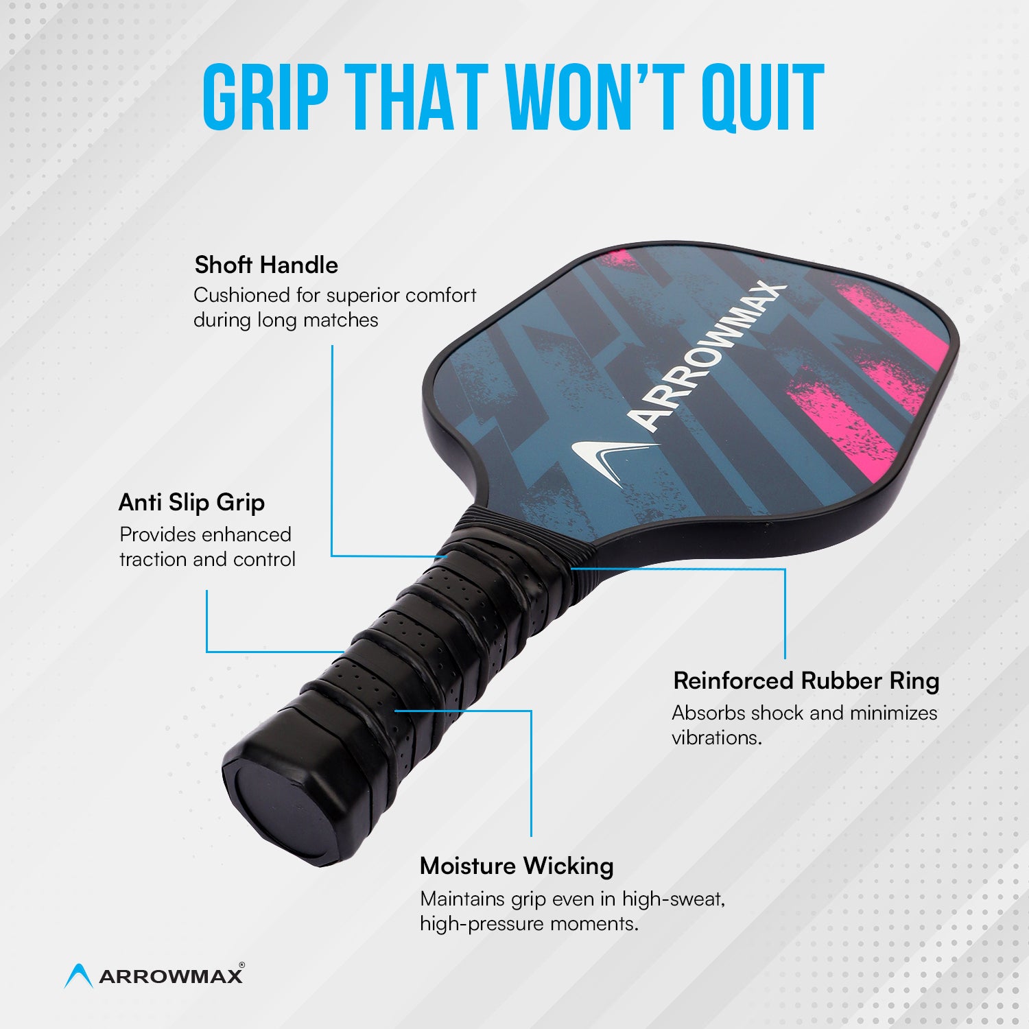 Experience the perfect mix of power and finesse with the Arrowmax Fiberglass Pickleball Paddle – designed for all skill levels!