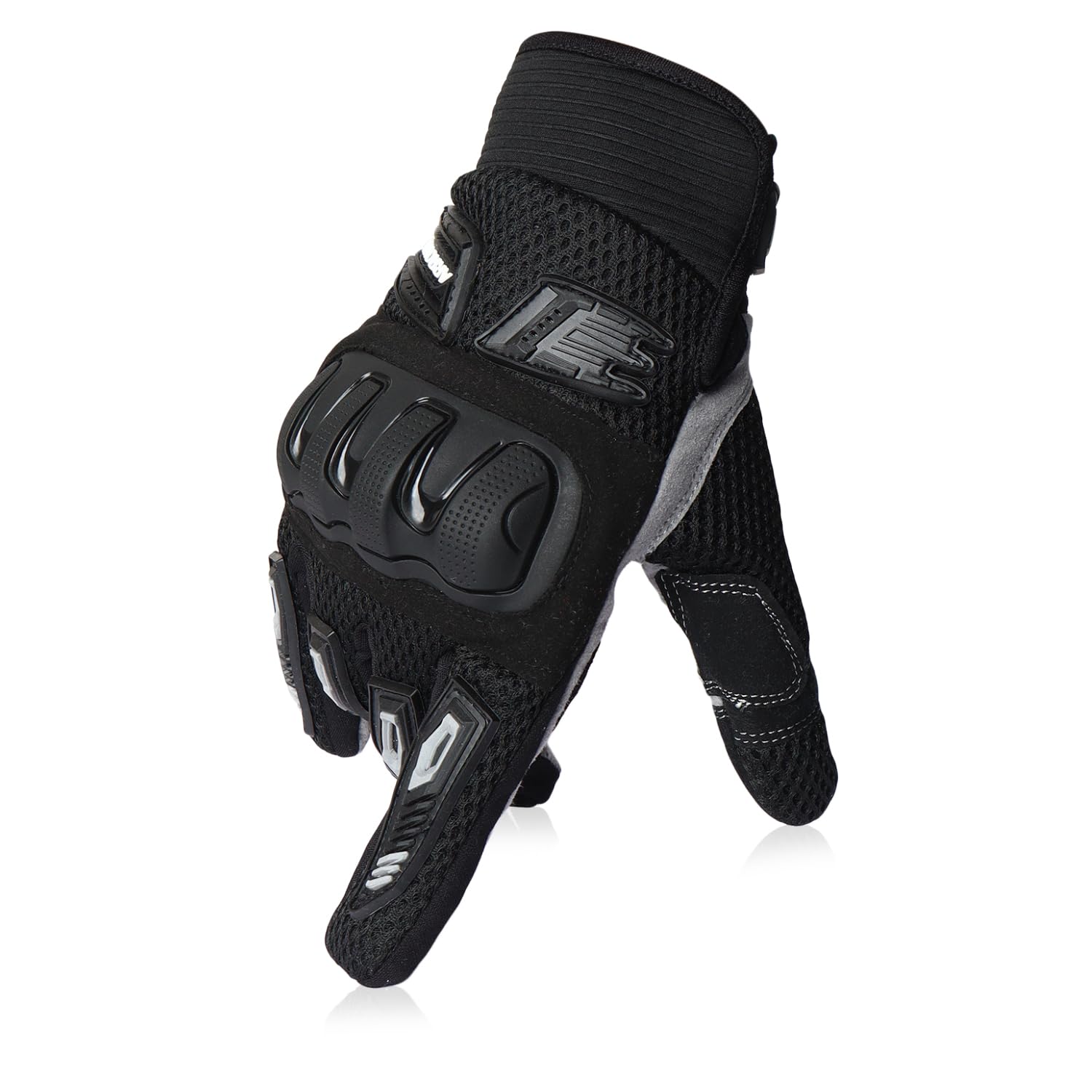 Molded knuckle reinforcement and high-performance synthetic overlays shield against impact and abrasion during falls or rough terrain—a hallmark of serious riding gear