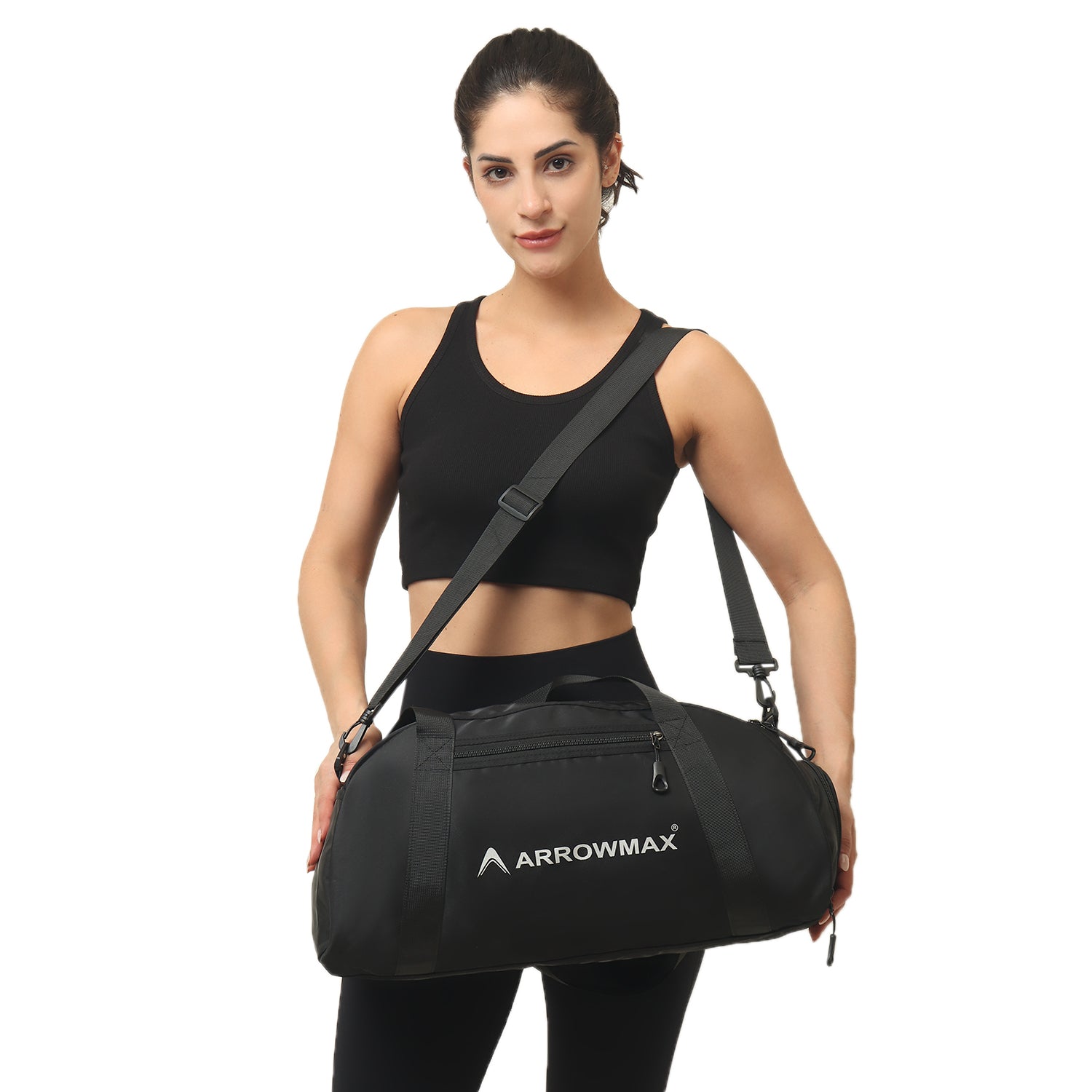 A smart gym duffle carry bag with a sleek design that suits men and women — perfect for gym, yoga, sports, swimming, and short travel trips.