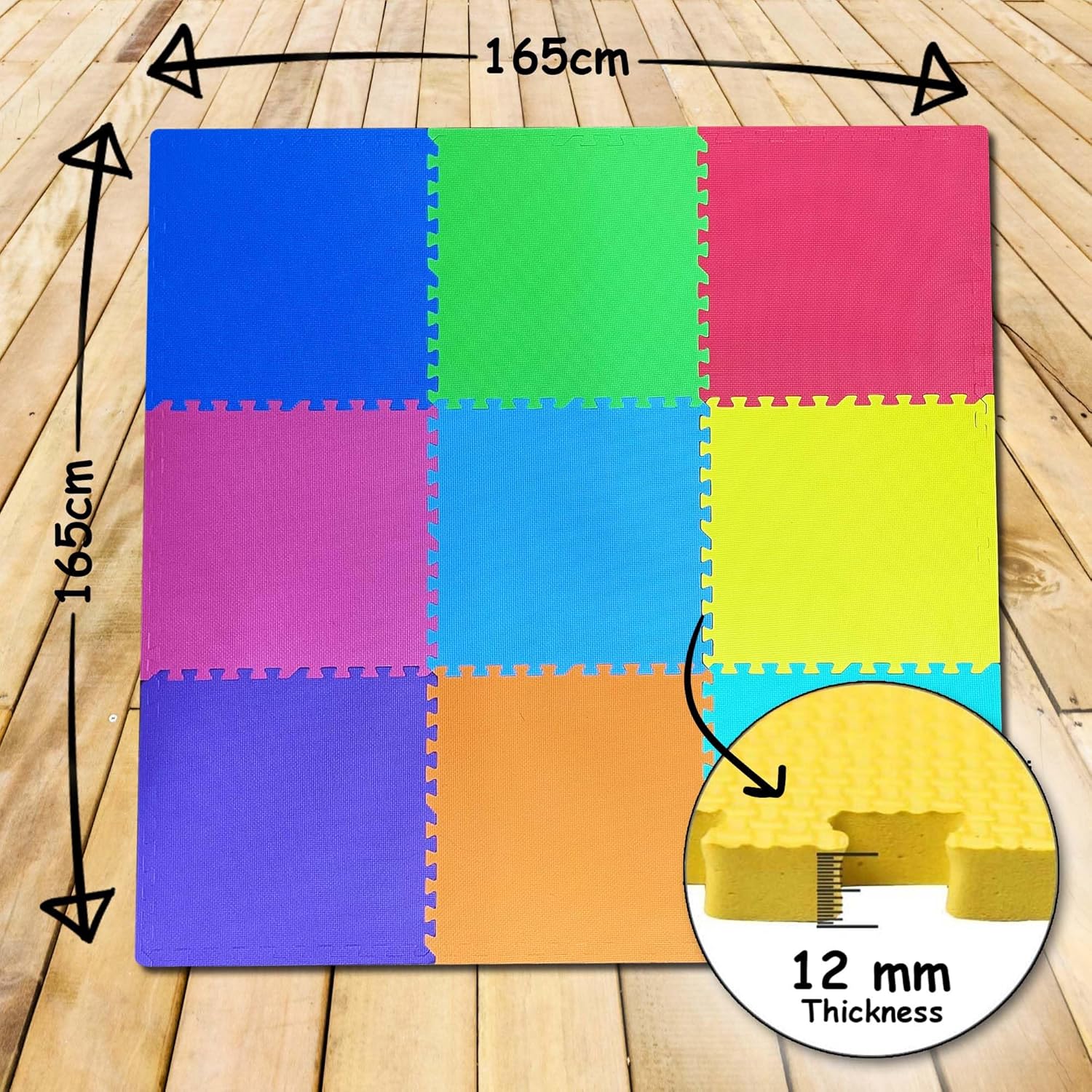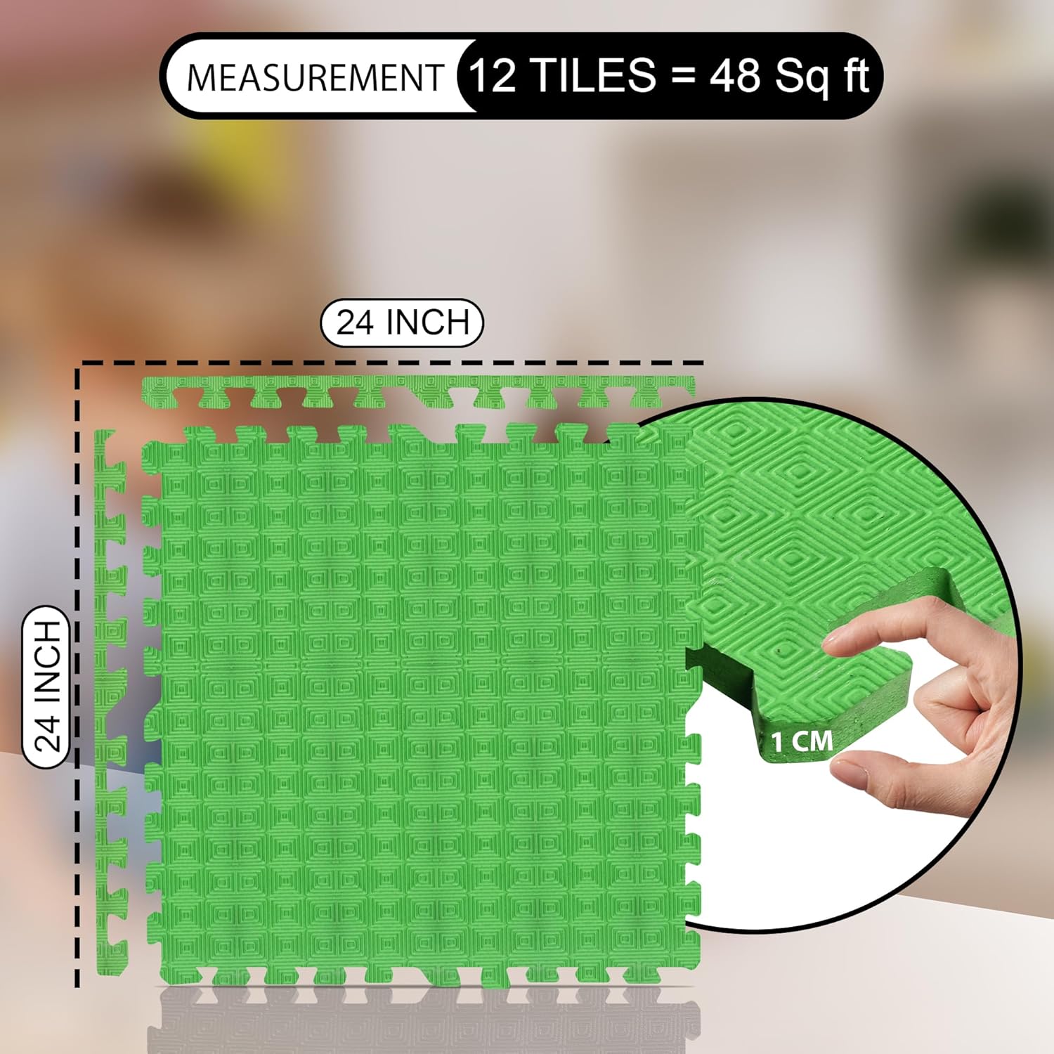 Each tile measures 2ft x 2ft, making it easy to customize the play area according to your room size. The interlocking edges keep tiles firmly in place, ensuring stability even during active play.
