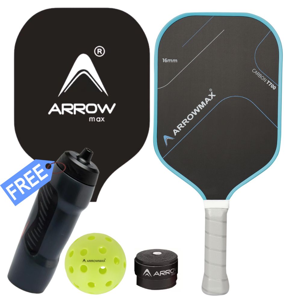 Elevate your pickleball game with the Arrowmax T-700 Carbon Pickleball Paddle Set—crafted for players who demand the perfect blend of power, control, and durability. This premium set includes everything you need to dominate the court: one high-performance T-700 carbon paddle, a durable 40-hole ball, a sleek zipper cover, an extra handle grip, and a stylish sipper for convenience on and off the court.