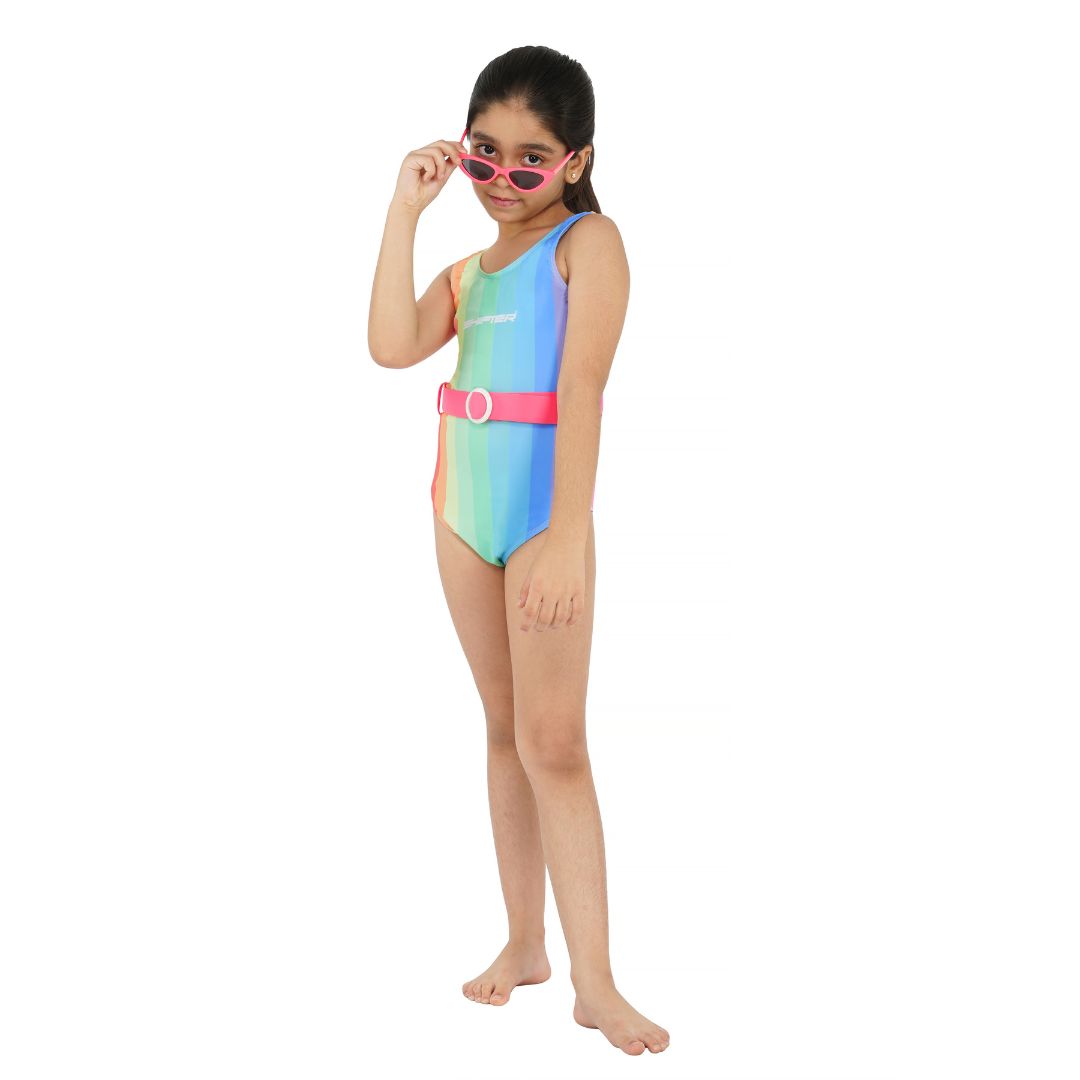 Brighten up pool days and beach vacations with the Shifter Rainbow Swimsuit—a fun, colorful one-piece designed for little swimmers who love to stand out. With its eye-catching rainbow print and playful pink belt detail, this swimsuit blends fashion and function for a secure, all-day comfortable fit. Whether it’s swim lessons, a summer getaway, or splash-time at home, this suit is made for movement, fun, and confidence.