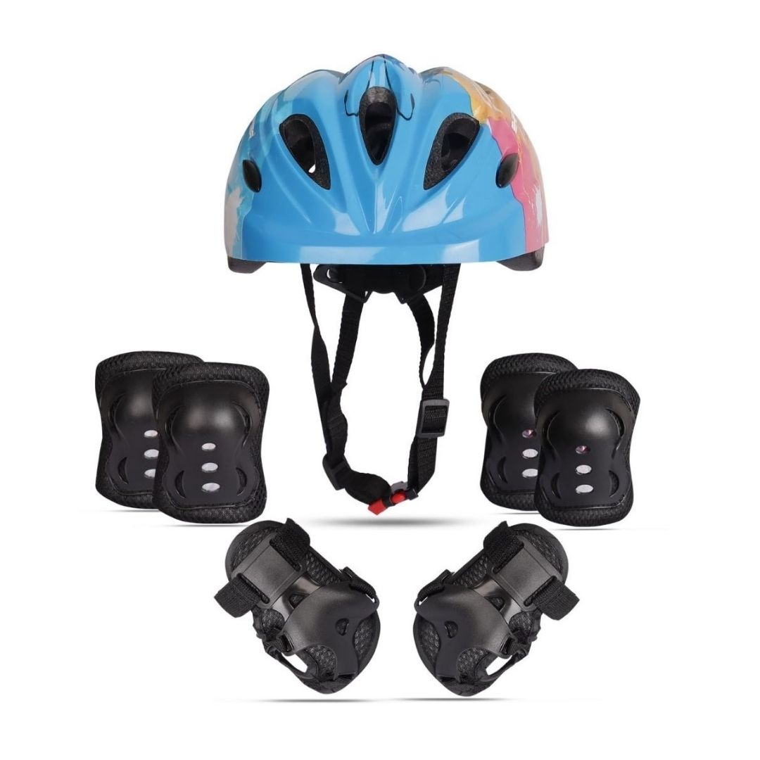 Ensure your child’s safety during outdoor adventures with this skating & cycling adjustable helmet set with guards for kids. Designed in free size to fit most children, it comes with a sturdy helmet, knee pads, elbow pads, and wrist guards for complete protection. Perfect for skating, cycling, and other sports, this set is made from durable materials, offers adjustable fitting, and ensures comfort along with safety. Ideal for active kids who love outdoor sports, this kids protective gear set keeps them safe while they have fun.